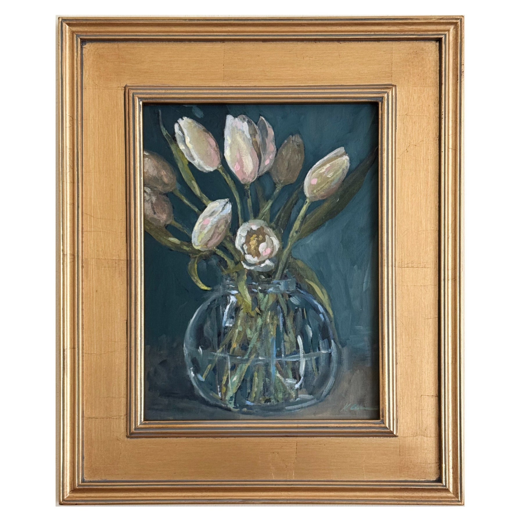 An original oil painting on canvas by Katharine Gates. Measures 15 x 17 inches including the frame.