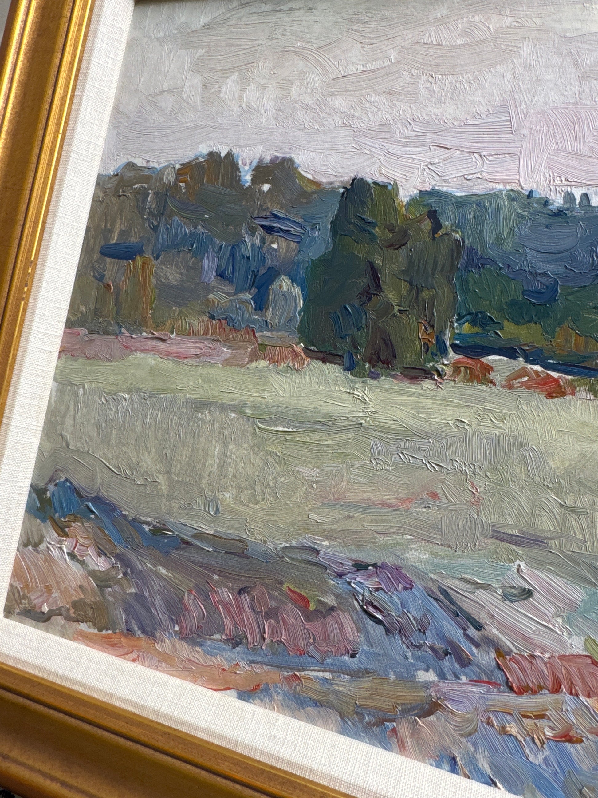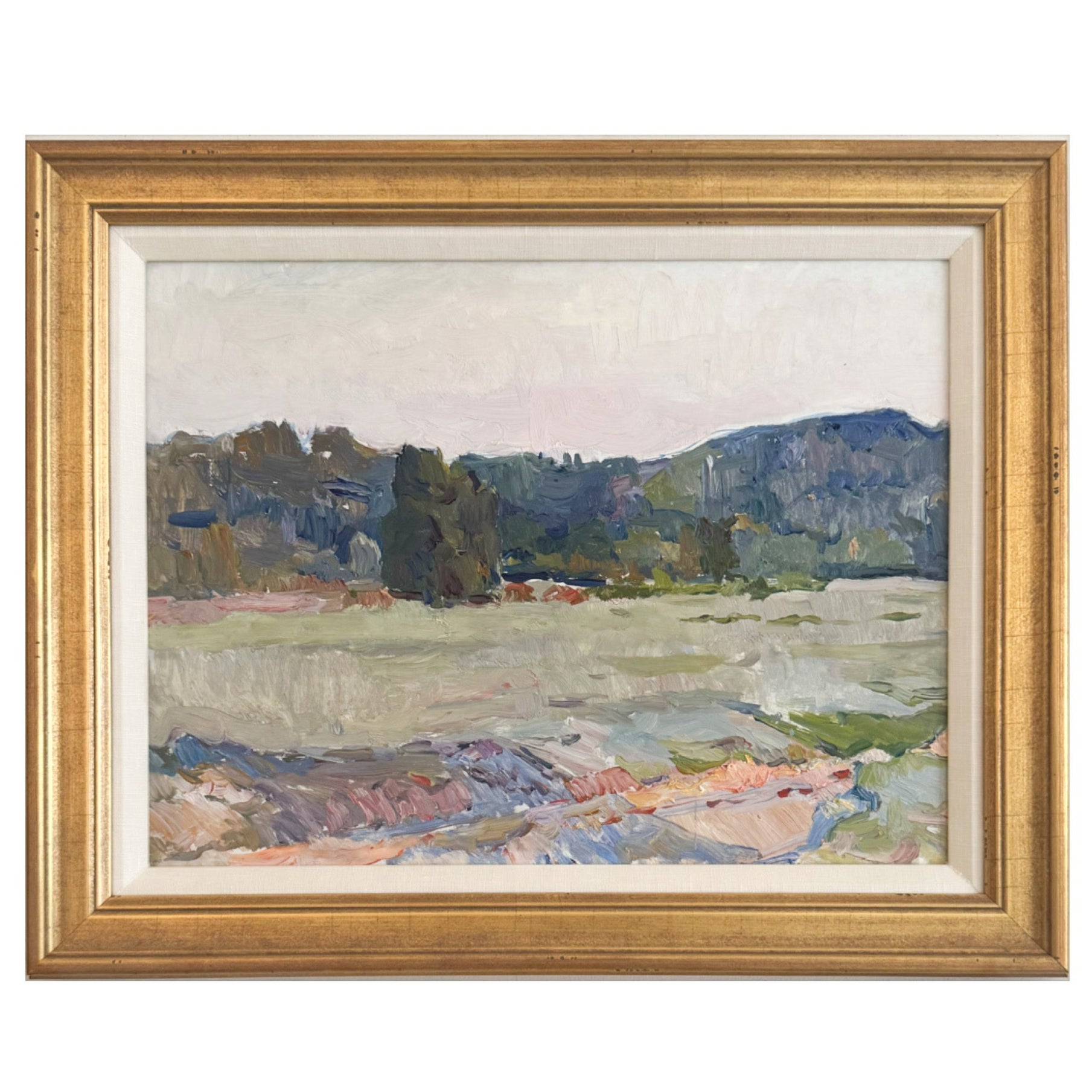 An original vintage oil painting on board. Excellent condition and newly framed in a classic gold frame with a linen liner. Measures 16 x 20 inches including the frame.
