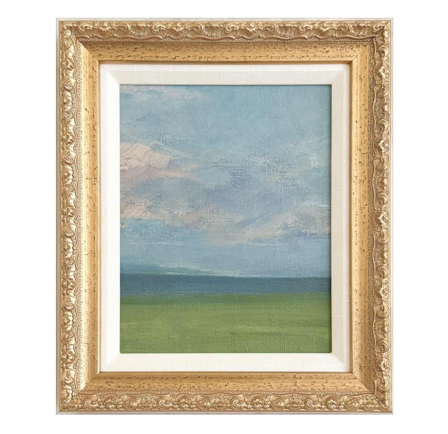 An original vintage oil painting on canvas. Excellent cotton and newly framed in a light gold ornate frame with a linen liner. Measures 11 x 13 inches including the frame.