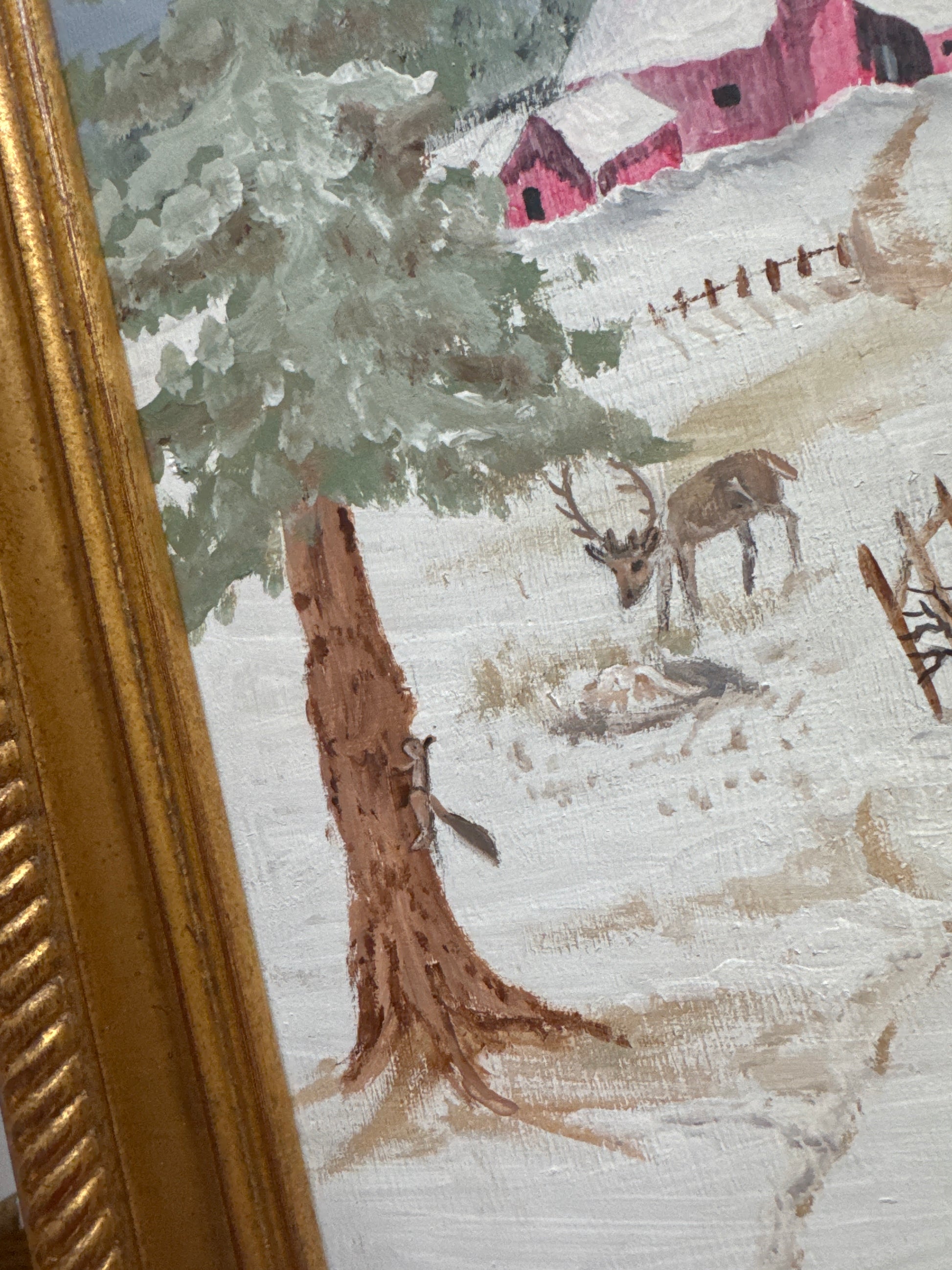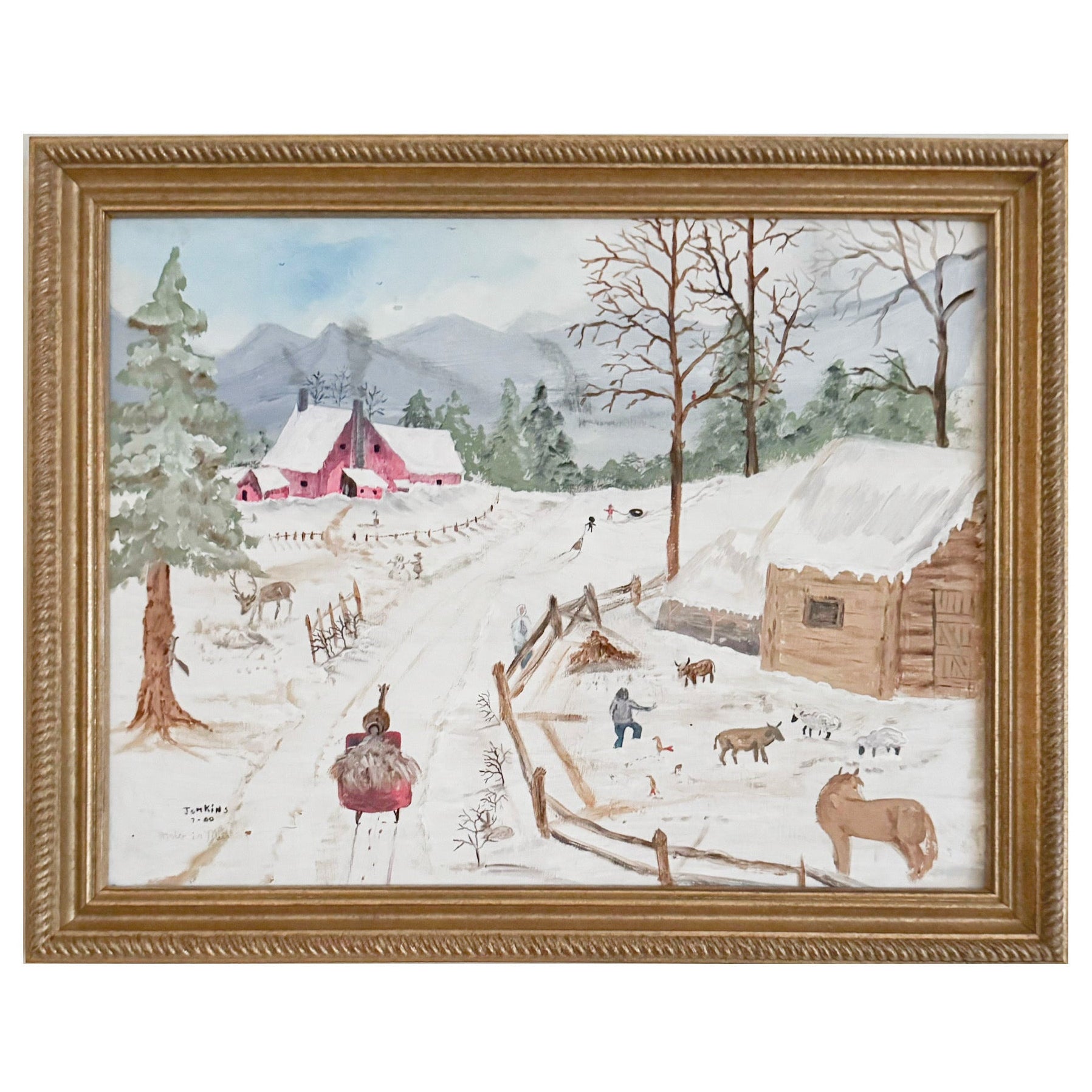 An original vintage oil painting on canvas. Excellent condition and newly framed. Measures 17 x 21 inches including the frame. Signed in the lower left.
