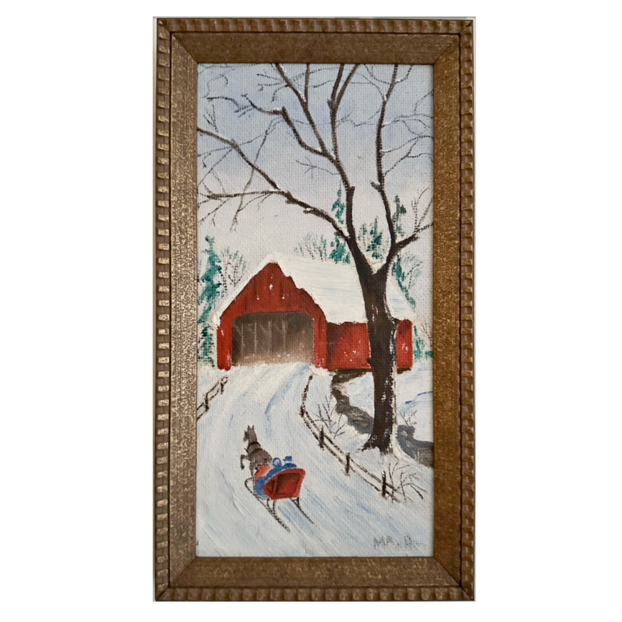 An original vintage oil painting on canvas. Signed in the lower right. Excellent condition and newly framed. Measures 8 x 13 inches including the frame.