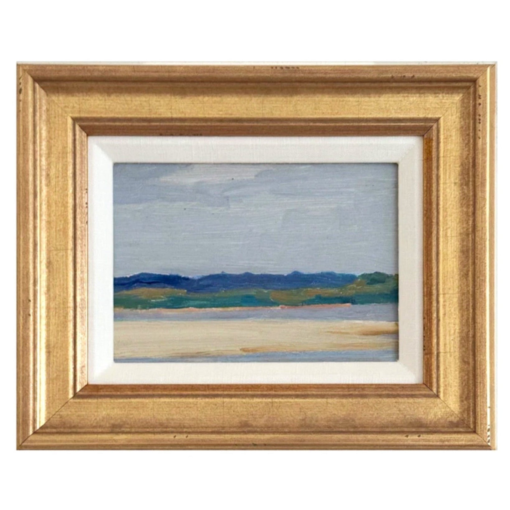 An original vintage oil painting on board. Excellent vintage condition and newly framed with a linen liner. Measures 9 x 11 inches including the frame.