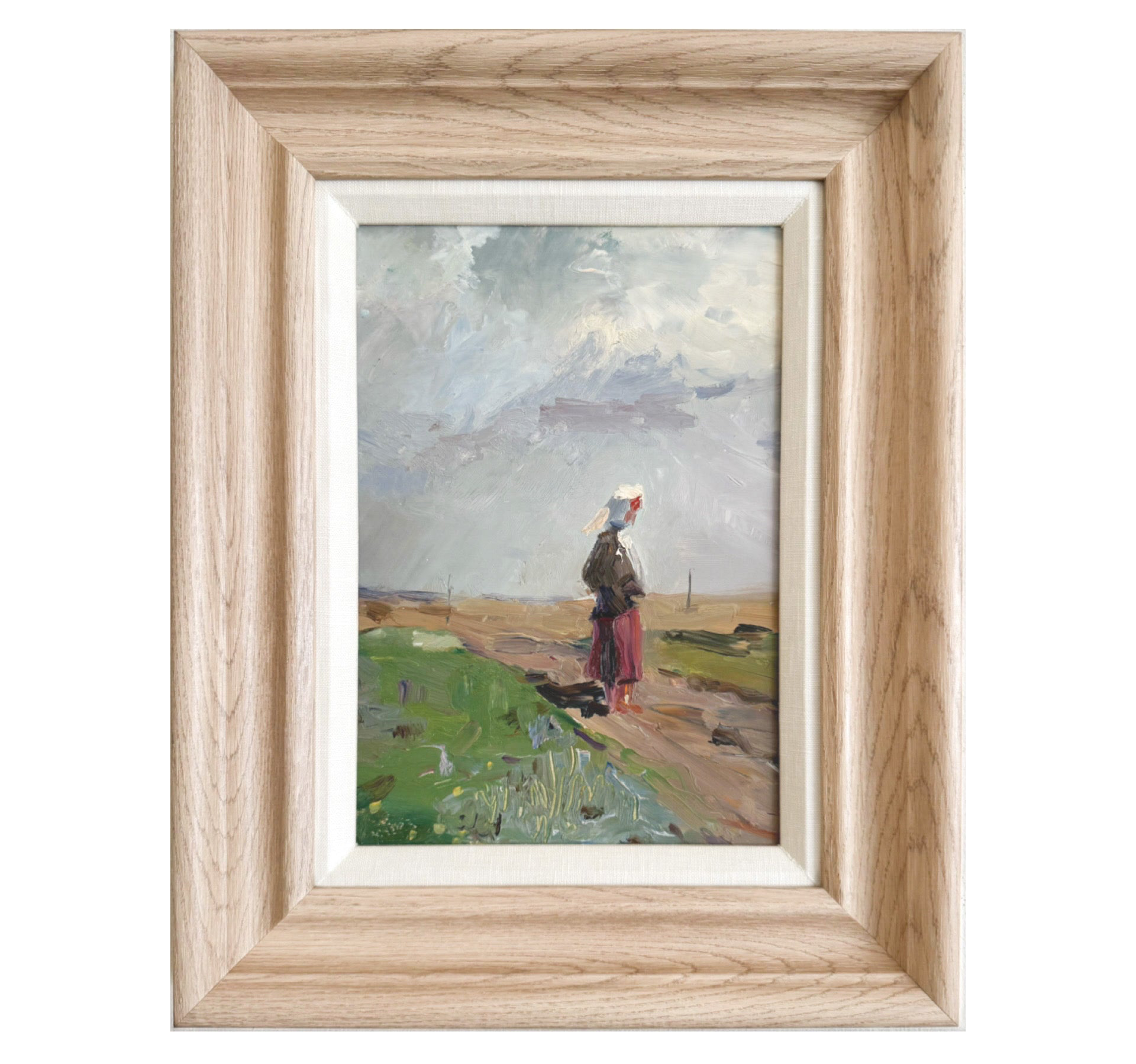 An original vintage oil painting on board. Excellent condition and newly framed in a pine frame with a linen liner. Measures 12 x 15 inches including the frame.