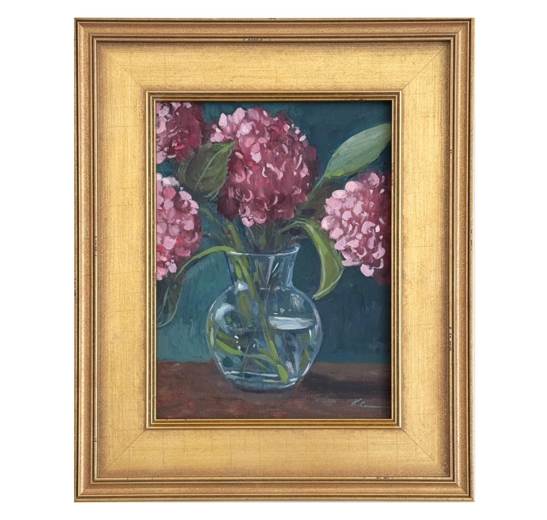 An original oil painting on canvas by Katharine Gates. Measures 15 x 17 inches including the frame.