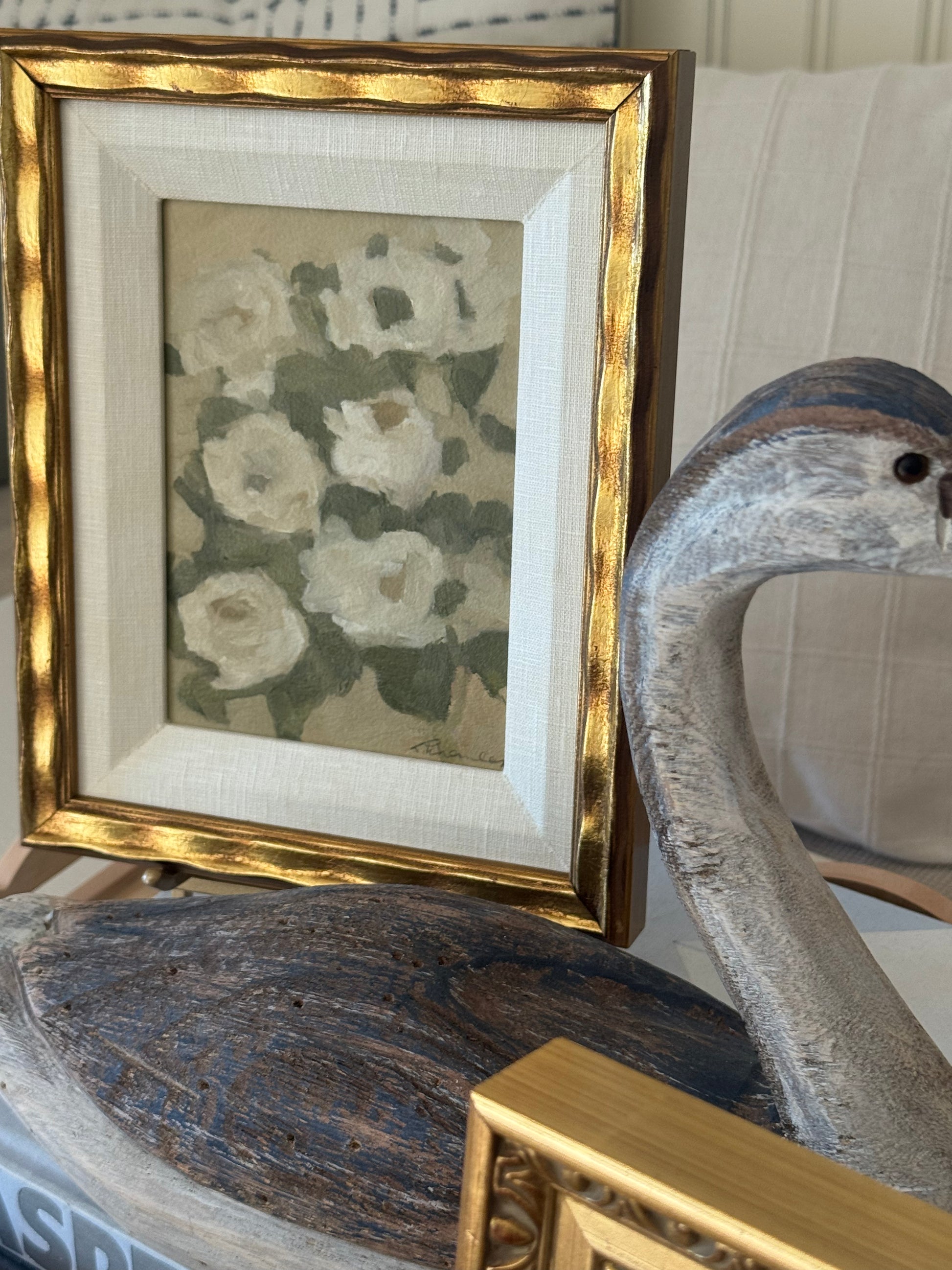 An original painting by Laura Knowles. Signed in the lower right. Includes an easel for display. Measures 8 x 10 inches including the frame.