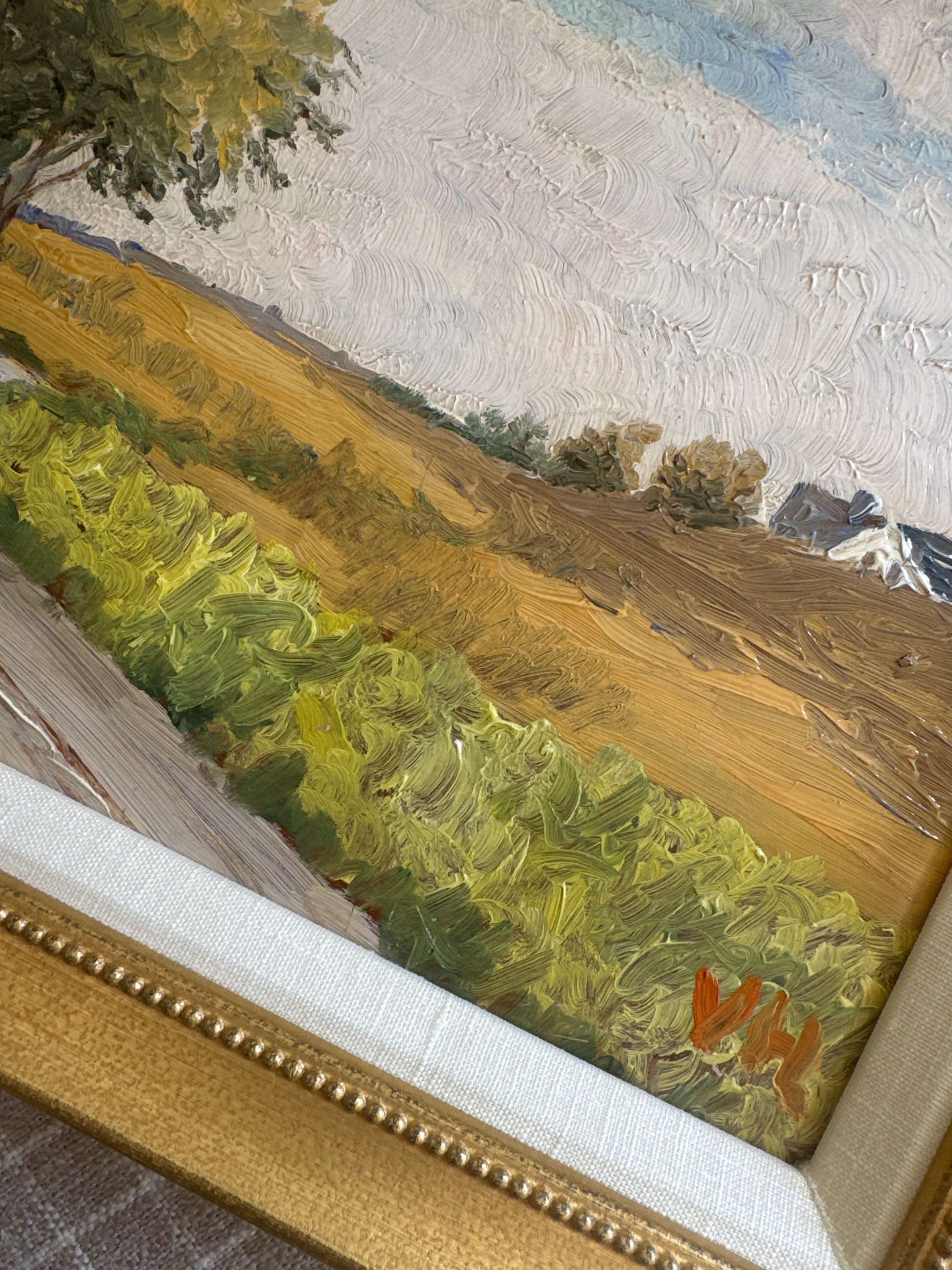 An original vintage oil painting on panel. Excellent condition and newly framed. Signed in the lower right. Measures 14 x 18 inches including the frame.