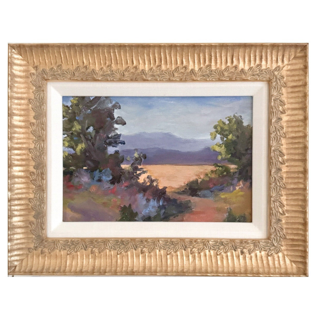 Measures 10 x 13 inches including the frame. An original vintage oil painting on canvas. Excellent condition and newly framed with a linen liner.