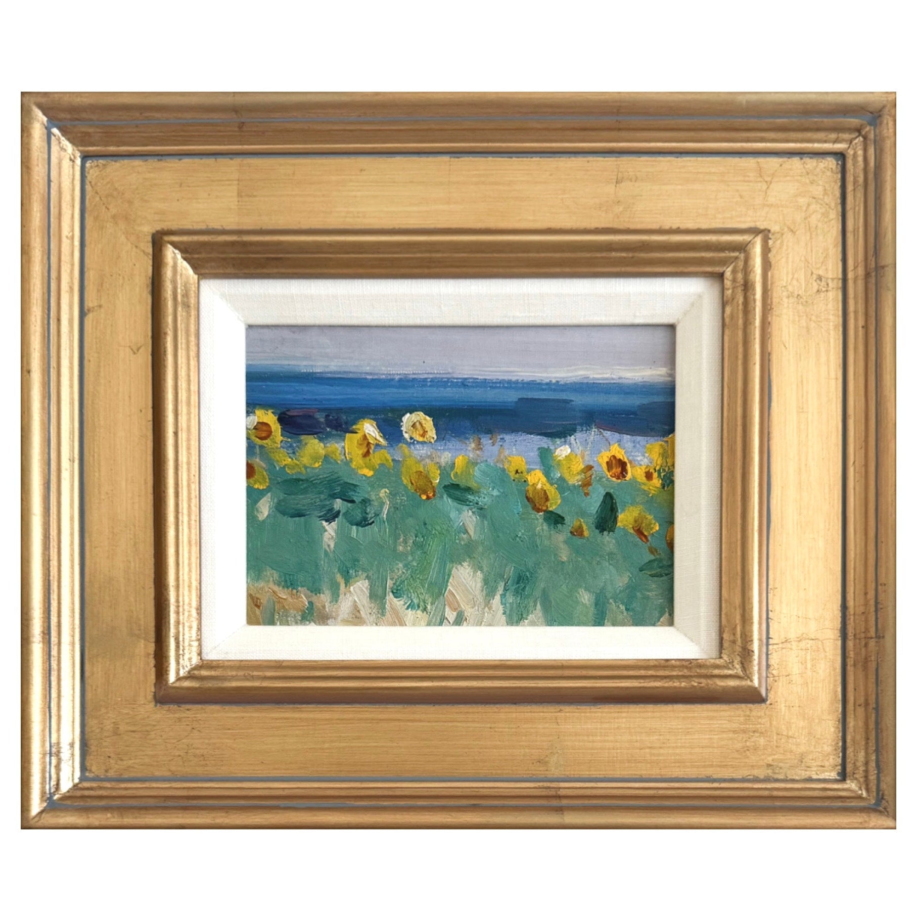An original vintage oil painting on panel. Excellent condition and newly framed in a classic gold frame with a linen liner. Measures 11 x 13 inches including the frame.
