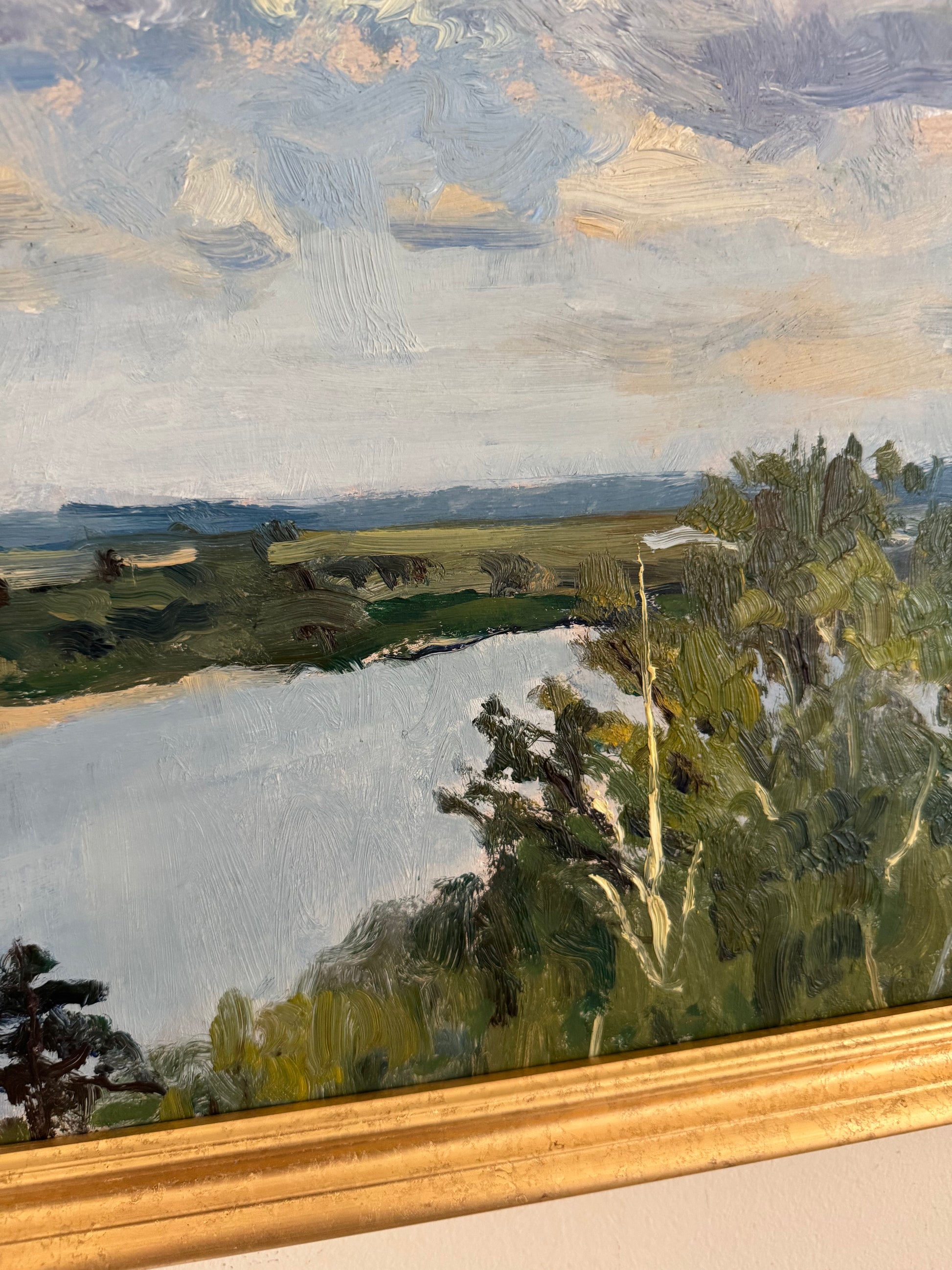 An original vintage oil painting on board. Signed on the reverse. Excellent condition and newly framed. Measures 14 x 18 inches including the frame.